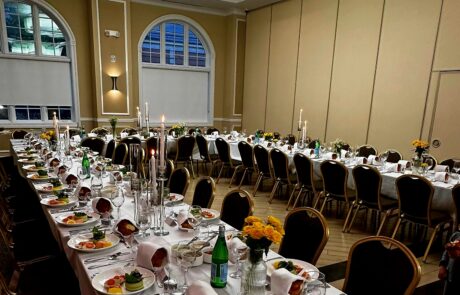 Our Standard Event Hall Rental Package provides guests with partial-day access to our ballroom and Kallah room. This package includes our in-house tables, chairs, and Mechitzas. Please kindly note that additional decor, drapery, and seating rentals are not allowed within the scope of this package. Valet Parking is available for an additional fee.